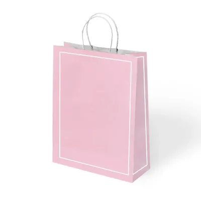 Doğa dostu malzemeler ile üretilen pembe makaron büküm saplı Kraft çanta modelleri ile aldığınız hediyeleri sevdiklerinize verebilirsiniz. Kendinize ait olan bir mağazanız varsa, hediyelik eşya satışlarınızda naylon poşet yerine alışveriş yapan müşterilerinize sunabilirsiniz.