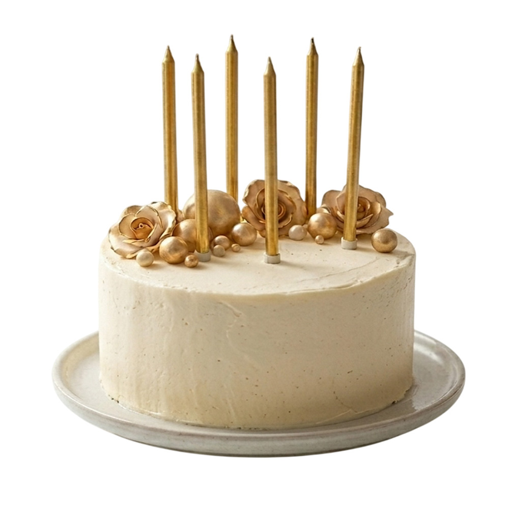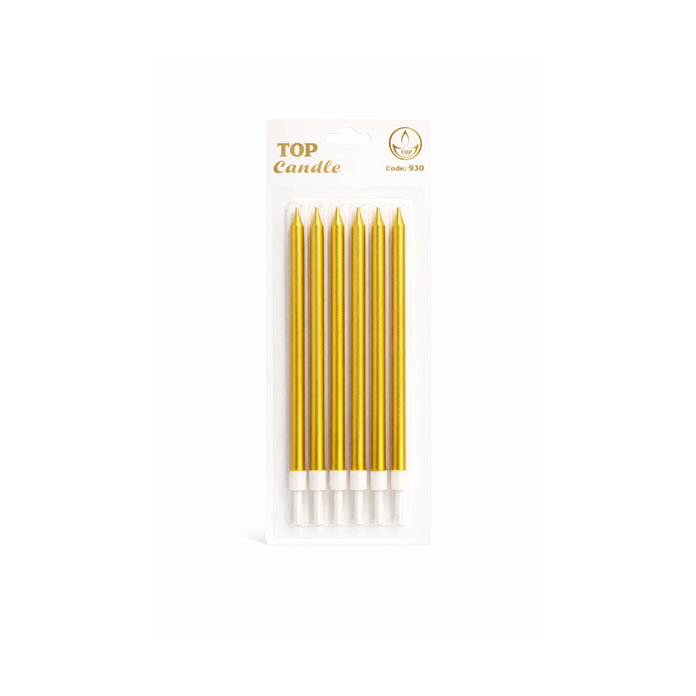Altın Uzun Pasta Mum Seti 15cm 6 Parça