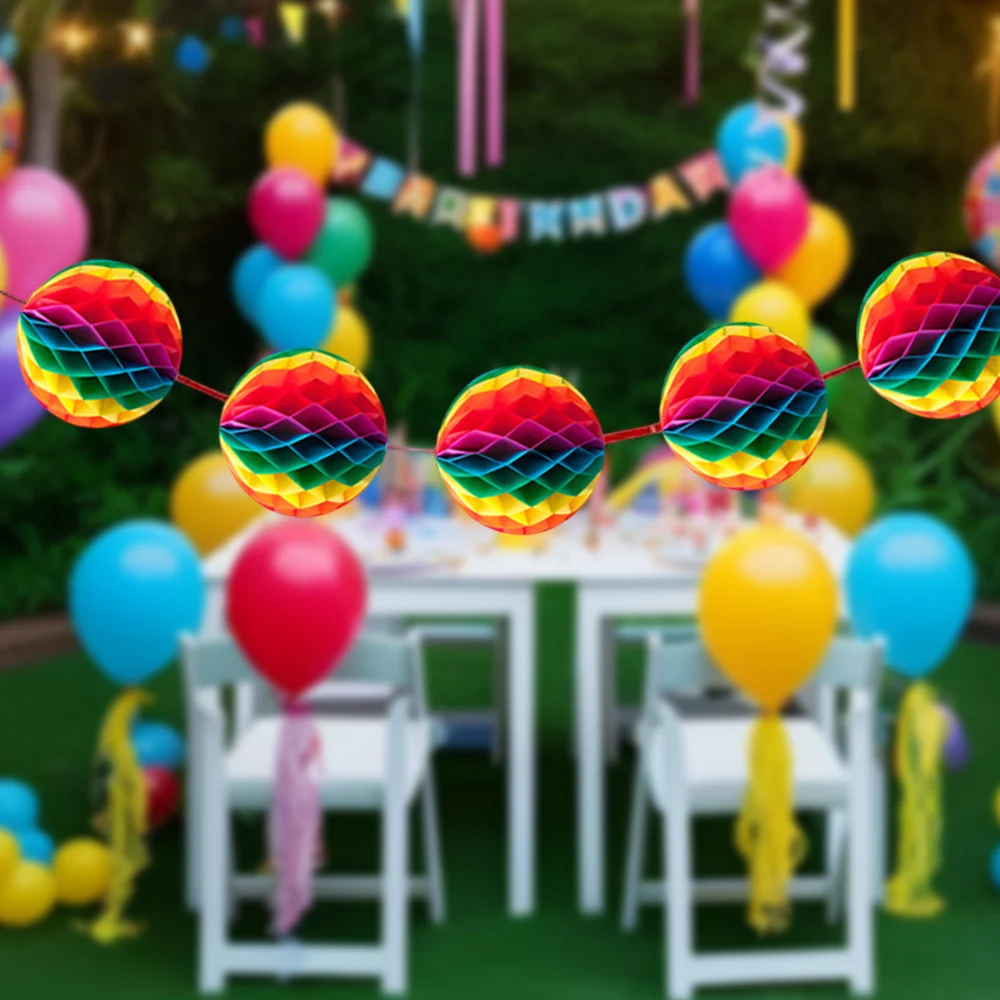 Colorful honeycomb ball garland is a beautiful way to add that pop of color to your special event.