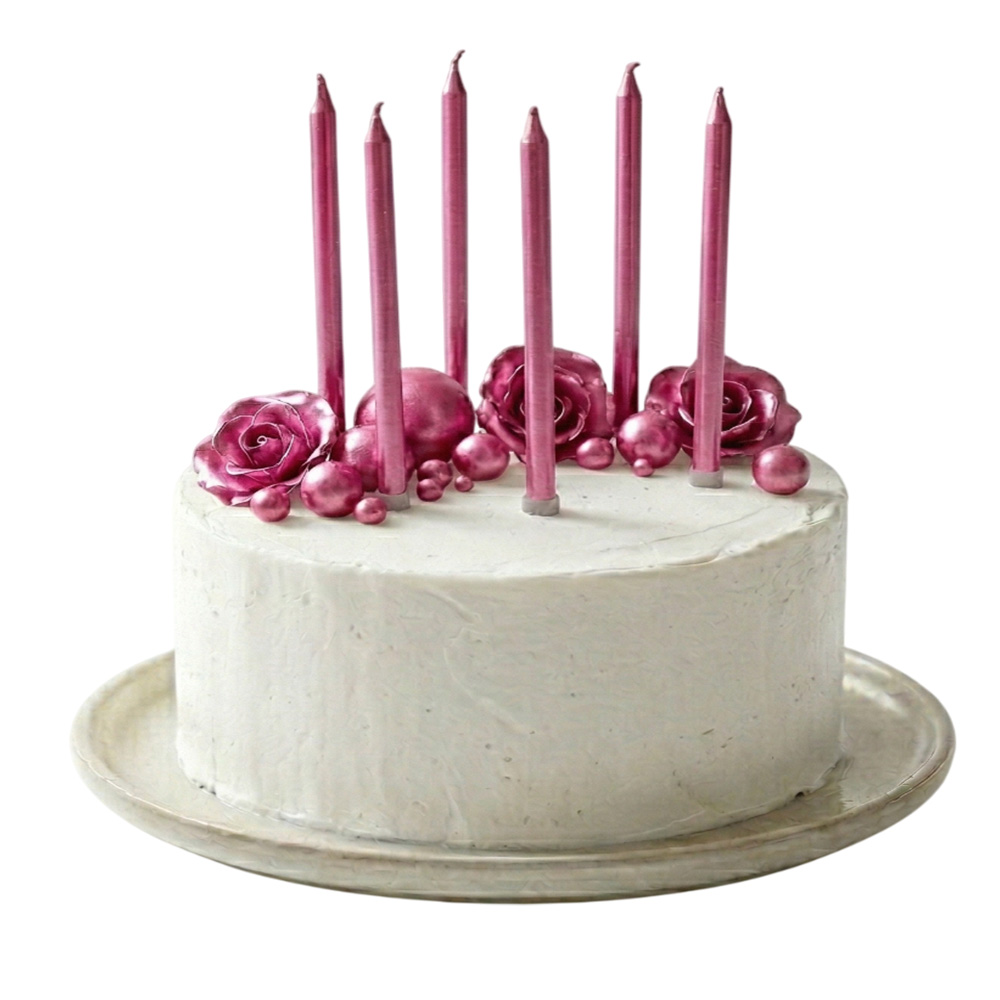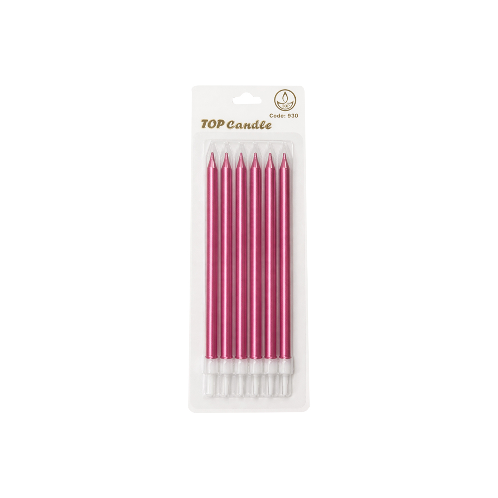 Fuşya Uzun Pasta Mum Seti 15cm 6 Parça
