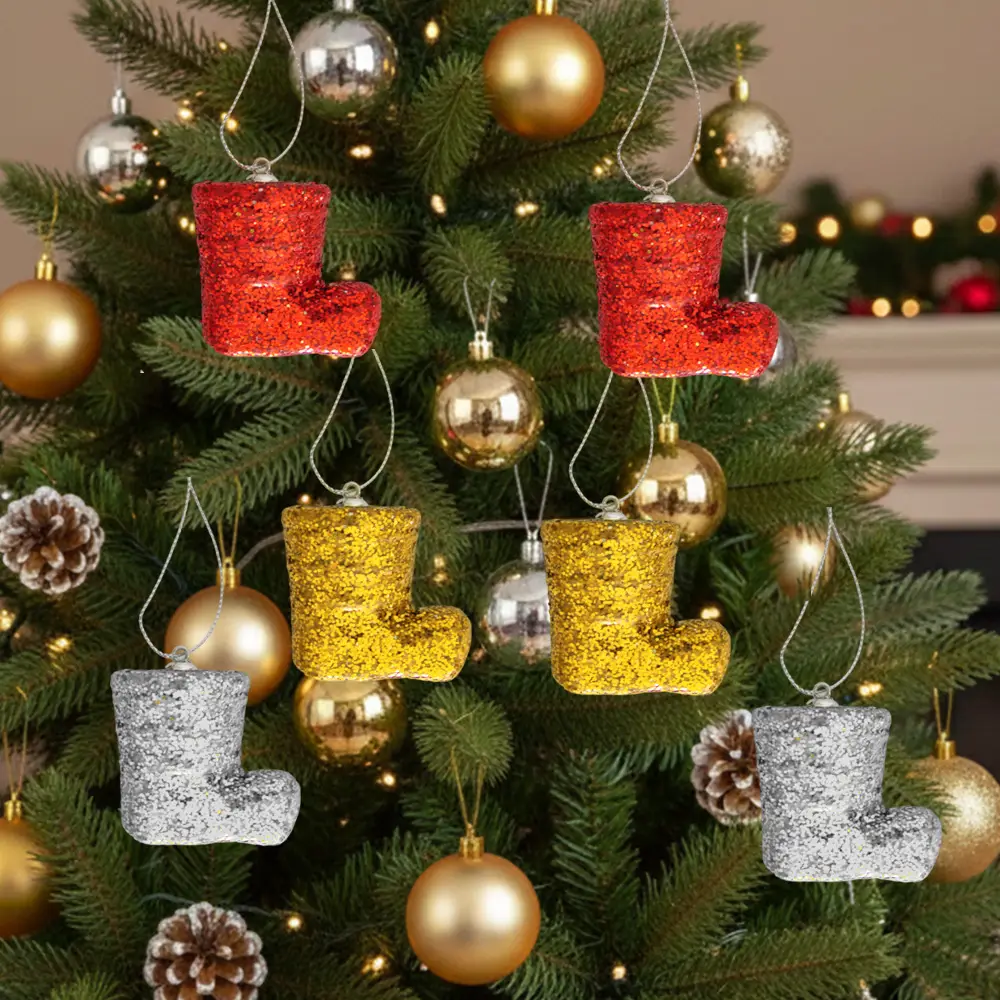 Glitter Santa Boot Christmas Ornaments