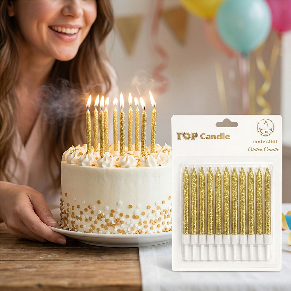 Unlike ordinary candles, the gold glittery texture reflects light beautifully and looks stunning in photos. Appealing to both classic and modern cake designs, this set adds that final "sparkling touch" to your celebrations.