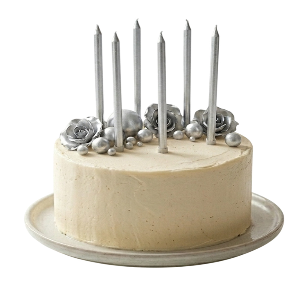 Gümüş Uzun Pasta Mum Seti 15cm 6 Parça