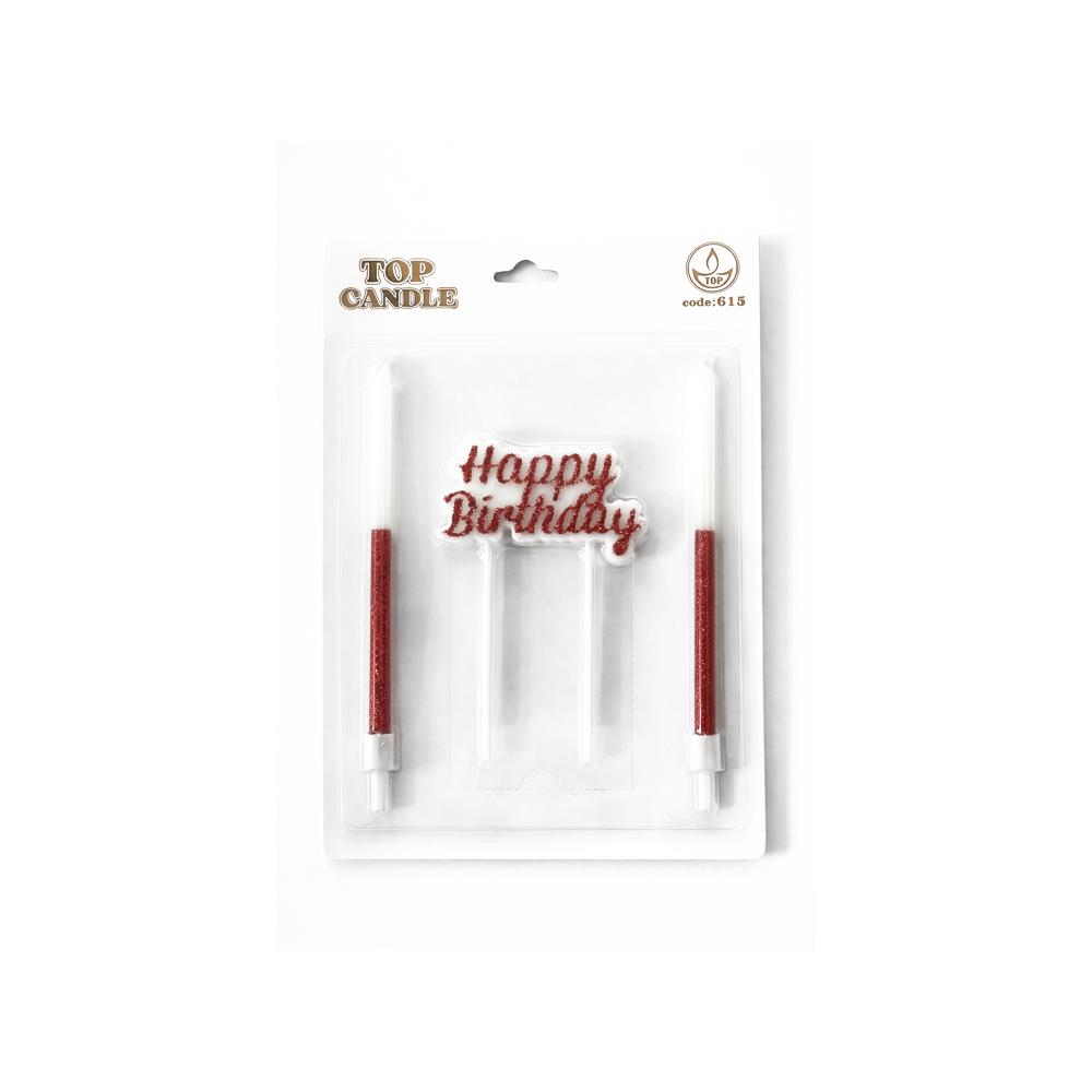 Happy Birthday Yazılı Kırmızı Simli Pasta Mumu Seti