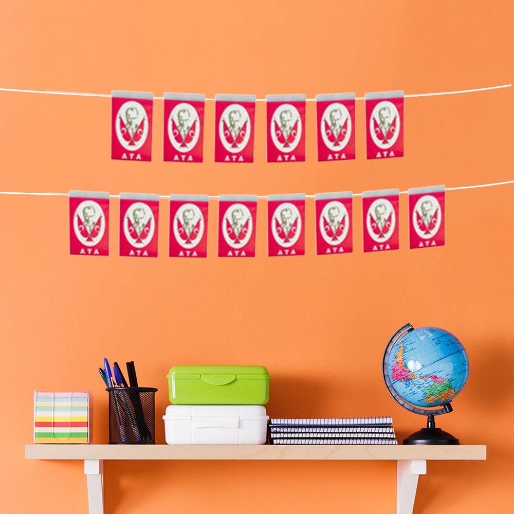 Ata mini boy ipli bayrak ile milli bayram coşkusunu yaşayabilirsiniz. Hem iç mekanda hem de dış mekanda süslemelerde yer verebilirsiniz.