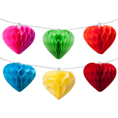 Rengarenk sıralı kalp petek süs ile sevgililer günü dekorasyonlarına farklı bir hava katabilirsiniz. Özel bir dekorasyon hazırlamak açısından tercih edeceğiniz tasarımlar ile ortamda bambaşka bir atmosfer oluşturabilirsiniz.