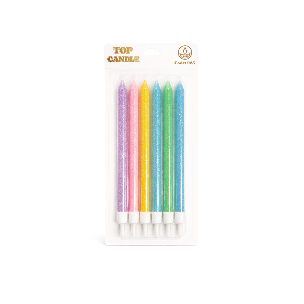 Karışık Renkli Makaron Simli Pasta Mumu Seti 6 Parça