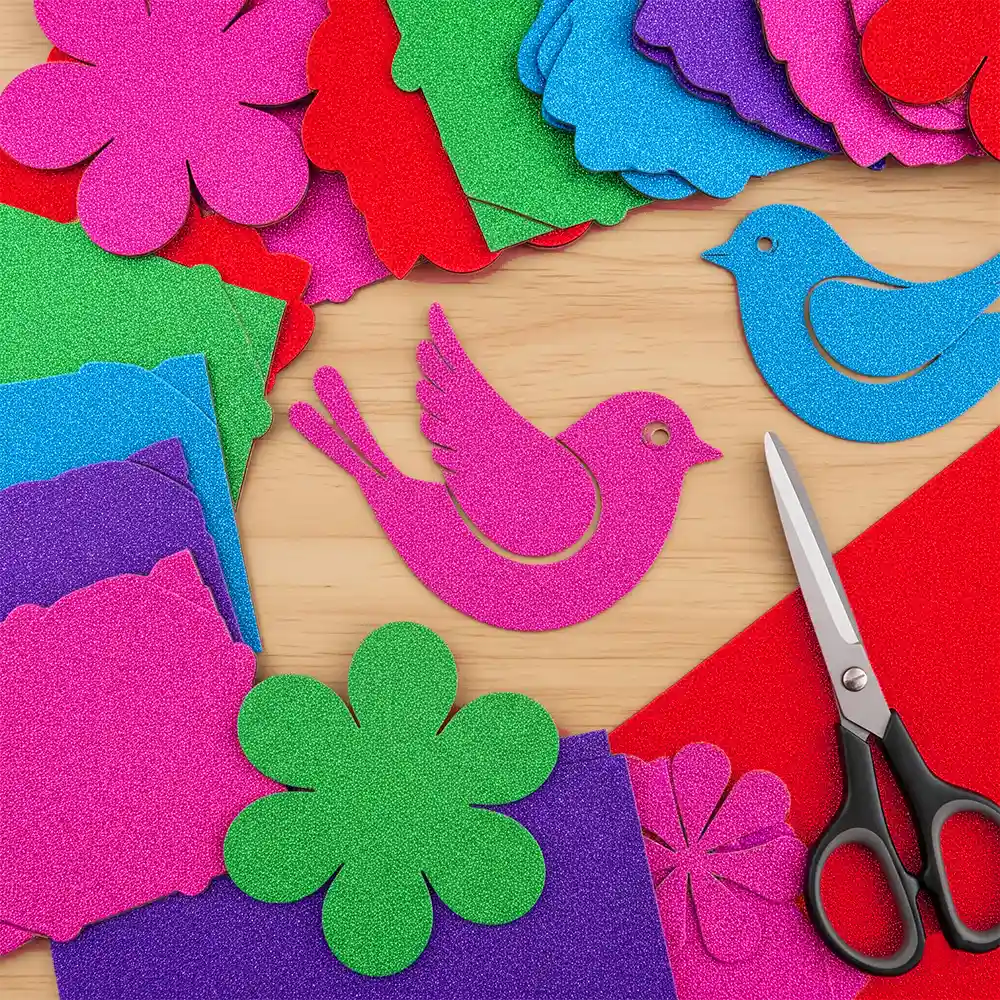 - Paket içerisinde karışık renkte simli kartonlar yer alır.