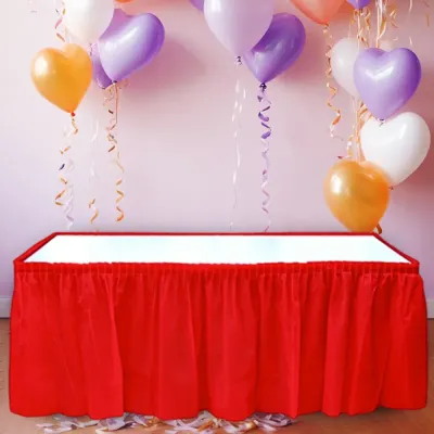 Kırmızı plastik masa eteği ile harika bir sofra düzeni oluşturabilirsiniz. Parti sofrası hazırlığında masa düzeni son derece önemlidir. Masa eteği tercih ederek özel bir görüntü elde edebilirsiniz.