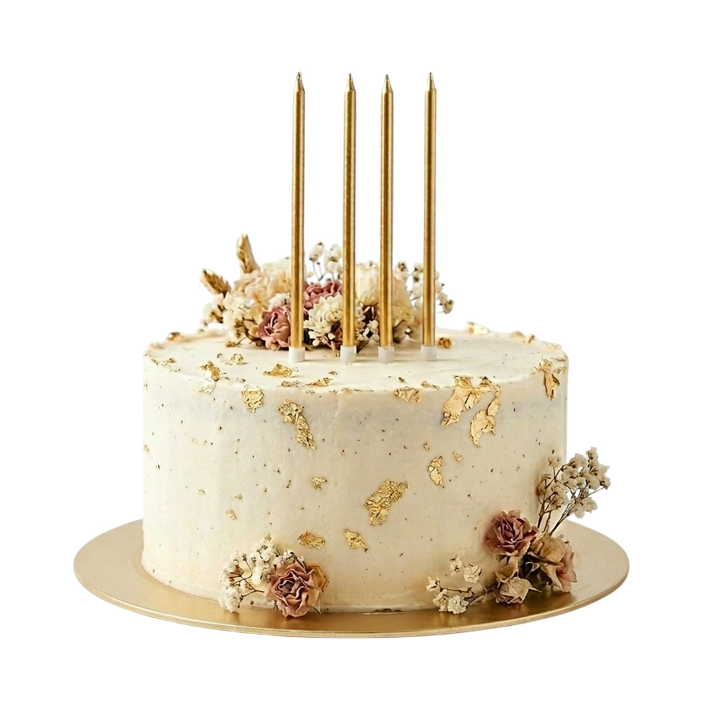 Altın Uzun Pasta Mum Seti 15cm 6 Parça