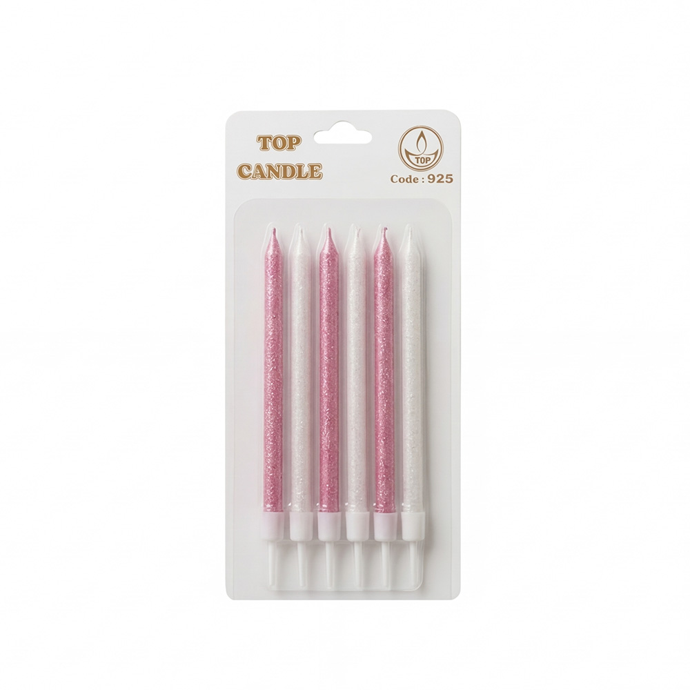 Pembe Beyaz Simli Pasta Mumu Seti 6 Parça