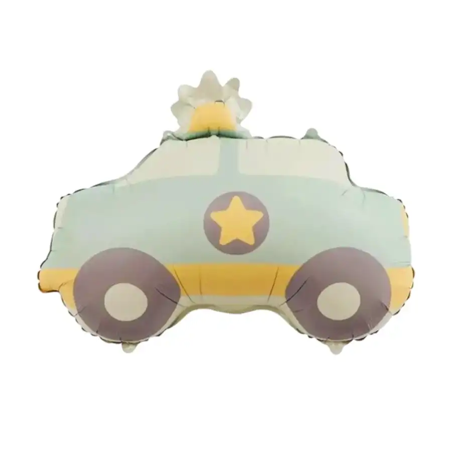 This premium 22x20 inch (56x50 cm) metallic Mylar balloon features a nostalgic blue and grey patrol cruiser design. Perfect for "Police Academy," "Vintage City," or "Law Enforcement" themed events.