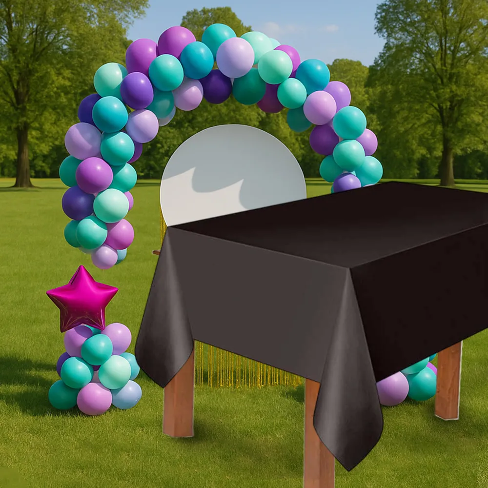 Siyah plastik masa örtüsü ile harika bir sofra düzeni oluşturabilirsiniz. Parti sofrası hazırlığında masa düzeni son derece önemlidir. Masa örtüsü tercih ederek özel bir görüntü elde edebilirsiniz.